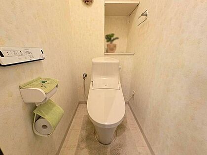 トイレ部分は温水洗浄便座付きです。ニッチ部にはちょっとしたインテリアを飾っても良いですね♪
