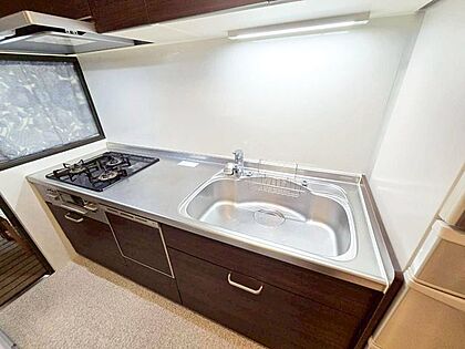 水回り丁寧にご利用されています。ビルトインコンロでお掃除もしやすいです。吊戸棚収納もあり♪