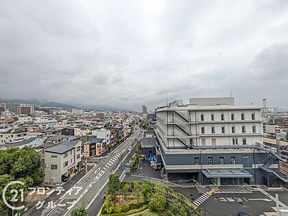 バルコニーからの眺望は視界が開けており、空の広がりや遠くの景色を楽しめる開放的なロケーション。周囲には高い建物が少なく、陽当たりと風通しの良さも魅力。朝夕の時間をゆったりと楽しめる空間です。