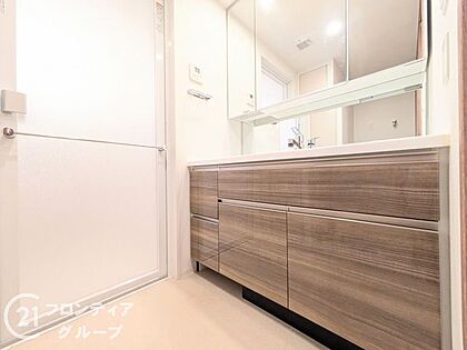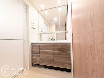 家族のライフスタイルに寄り添う広々設計の洗面台は家事効率のよい配置です。毎日使う場所だからこそ、清潔感と実用性にこだわった空間が嬉しいですね。収納スペースも充実しており、さらに使いやすさが向上します。