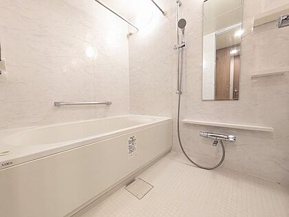心も体もリフレッシュできるバスルームは、明るい配色と機能的な設備が魅力。清掃もしやすく、家族の入浴時間を快適にサポートしてくれます。明るく開放的な空間で、リフレッシュできるひとときをお楽しみください。