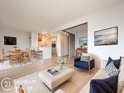 開放的なリビングは家族がくつろげるゆったりとした空間。大きな窓からは自然光が降り注ぎ、明るく温かな雰囲気を作り出します。日常の疲れを癒す、心地よい空間が広がっており、リラックスできる時間を提供します。