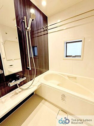 1階、バスルーム。窓付きのバスルームです。換気がしやすいのばもちろん、明るい時間帯の入浴であれば、風を感じながら太陽の明るさも感じることができるでしょう。