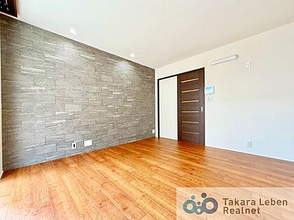 1階、リビング。アクセントクロスがおしゃれなLDK。インテリアを考えるのも楽しい♪