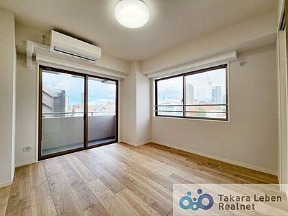 約6.0帖の洋室1。2面採光の明るく開放感あるお部屋です。エアコン付き◎