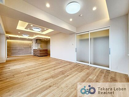 ワイドで広々とした、約24.8帖の大空間LDKです。天井が一部高く更に広く感じられます。