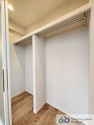 スーツケースなど大型品や、季節物など幅広く収納できるウォークインクローゼット