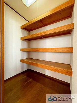 納戸。キッチン付近にある収納があるので、調理や片付けがスムーズになりますね。飲料や調味料、非常食などの買い置きもできます。