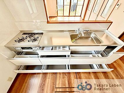 収納はスライド式の為、奥にしまい込んだ調理器具等の取り出しもスムーズに行えるため、調理がはかどりますね