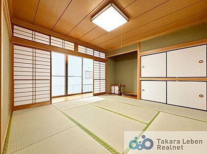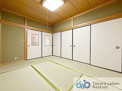 1階、和室6帖。隣接する9帖の和室との扉を開放して15帖の広々空間としても利用できます。