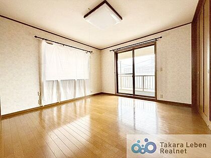 2階、洋室。ベランダに面した明るく開放感のあるお部屋。お布団を干す際にも便利で主寝室としてもお使いいただけます。