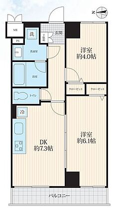 間取り 2DK 専有面積 40.79m2(壁芯)
