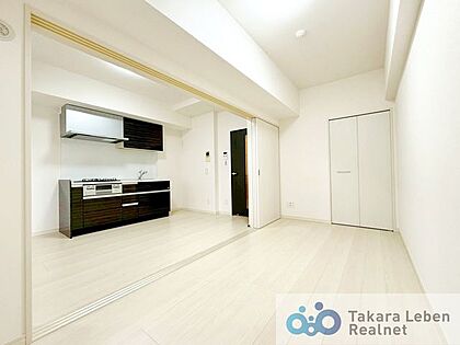 •  約7.3帖のDKは隣接する洋室の間仕切りを開放して約13.4帖の広々空間としても利用可能♪各所に収納を設けており荷物もすっきり片付きます!