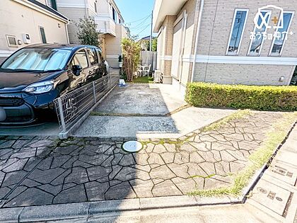 広々としたカースペース。前面道路も広く、お車の出し入れもスムーズに行えます。