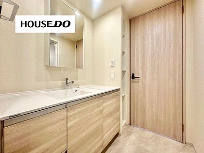 広々洗面台で手や顔が洗いやすい◎フラットで掃除もラクラク♪