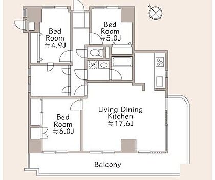 3LDK、価格2298万円、専有面積77.1m2、バルコニー面積21.56m2 使い勝手の良い3LDKの間取りです