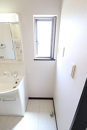 明るく清潔感のある色調で纏められた洗面室は、機能性に富んだ洗面台と採光窓が特徴です♪