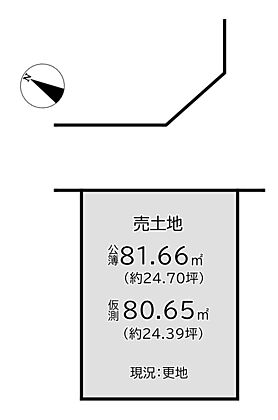 | 土地面積/坪(坪単価) | 81.66m2/24.75坪(50.90万円) | 代表的な接道 | 一方 公道 北東 5.9m ※詳細は備考欄をご確認ください |