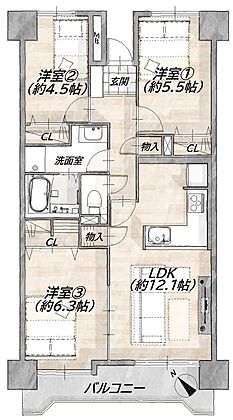 | 間取り | 3LDK | 専有面積 | 64.06m2(壁芯) |
