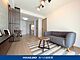 •  スタイリッシュな石調アクセントウォールと間接照明が映えるリビング。