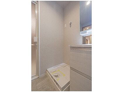 洗面台に洗濯スペースを採用。効率よく家事ができる導線が嬉しいですね。