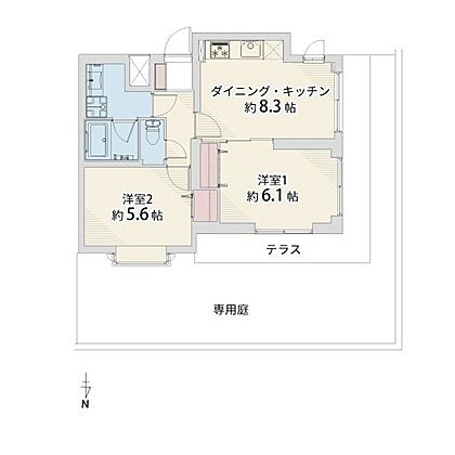 2DK+専用庭、専有面積47.75?、専用庭面積33.4?、室内リノベーション