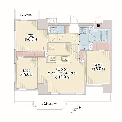 3LDK+TR+WIC、専有面積69.21?、バルコニー面積16.98?、室内リノベーション実施