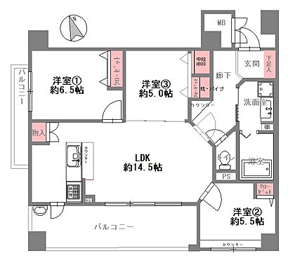 | 間取り | 3DK | 専有面積 | 72.33m2(壁芯) |