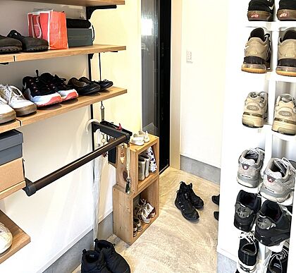 【玄関】玄関横のシューズICで、家族みんなの靴や外出用品を整理整頓。帰宅時の動線もスムーズで、玄関がいつもすっきり快適です。