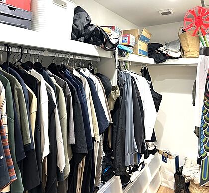 1階に配置されたウォークスルークローゼットは、収納力と動線の良さを両立。家事や身支度の効率を高め、暮らしやすさにこだわった空間です。