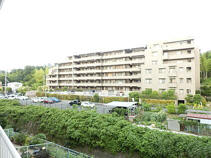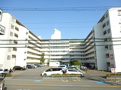 建物全体の北面からの外観(正面玄関)です。北大阪急行線の桃山台駅から徒歩13分、バスで9分で、環境の良い場所です。