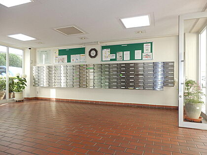1階のエレベーター前のゆったりしたエントランスホールです。集合ポスト(130戸分)は、最近新しく更新されているので綺麗です。