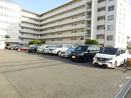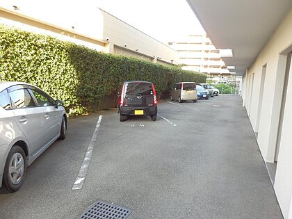 建物内部の南側の駐車場です。平面駐車場権利付きガレージが31台あります。この売り出し中の物件も平面駐車場権利付きです。
