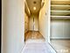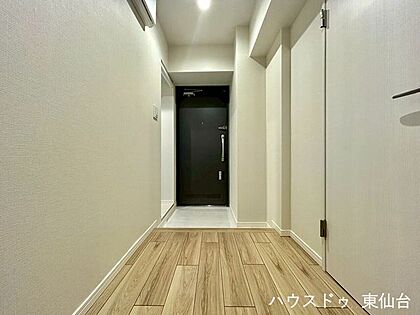 直線美が際立つモダンな玄関。機能性とデザイン性を兼ね備えた空間です。