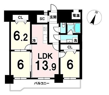 専有面積74.52m2 バルコニー面積11.36m2 3LDK