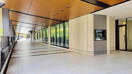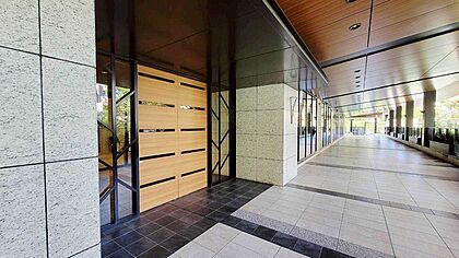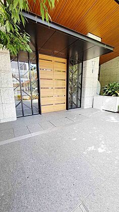 重厚感のあるエントランス。オートロックが設置され、セキュリティ対策も安心です。