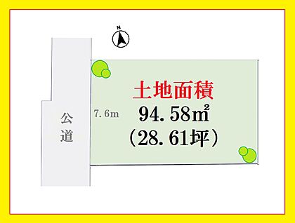 | 土地面積/坪(坪単価) | 94.58m2(実測)/28.66坪(645.50万円) | 接道 | − |