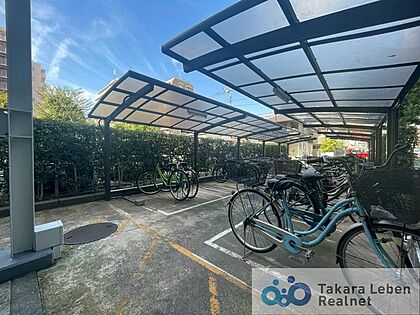 雨から守られる屋根付き駐輪場