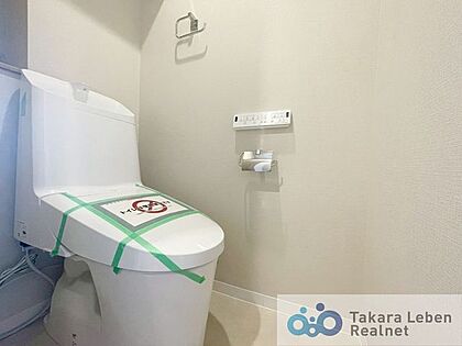 温水洗浄トイレ。リモコンは操作がしやすい壁掛けタイプです。