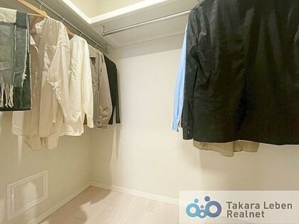 収納力豊富なウォークインクローゼット。スーツケースなどの大型品や季節物など、幅広く収納出来ます。