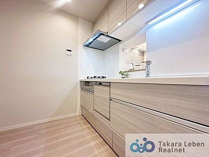 家事の手間が省ける食器洗浄機付き。広々ゆとりある広さのキッチンスペースです。