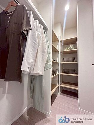 ハンガーパイプは勿論、棚の高さを調節できる可動棚があり、収納設備充実です。