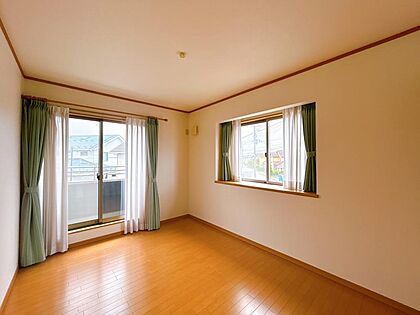 【リフォーム中 2025/9/25撮影】2階南東側洋室約8帖の写真です。カーテン撤去、一部クロス張替えを行います。掃き出し窓はバルコニーにつながっております。クローゼットが2つございますので主寝室にも
