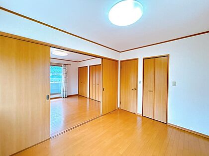 【リフォーム中 2025/9/25撮影】2階北東側洋室約6帖の写真です。一部クロス張替えを行います。隣の洋室約8帖と可動式のドアでつながっております。部屋の中にはウォークインクローゼットがございますの