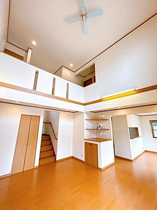 【リフォーム中 2025/9/25撮影】吹き抜けの写真です。リビングの一部が2階まで吹き抜けになっております。2階吹き抜け部分には窓がついているため日中のリビングを明るく照らします。
