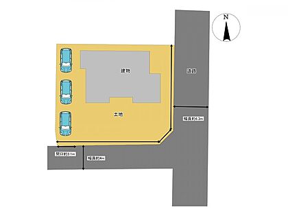 区画図です。少し傾斜がありますが縦列3台の駐車が可能です。