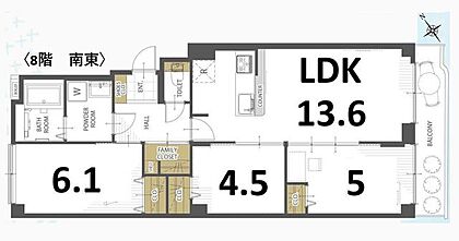 13.6帖広々LDK★日当たり良好えお部屋の中がとても明るく開放的です
