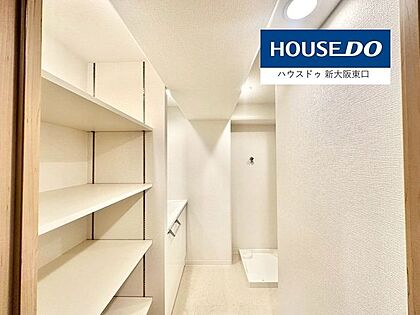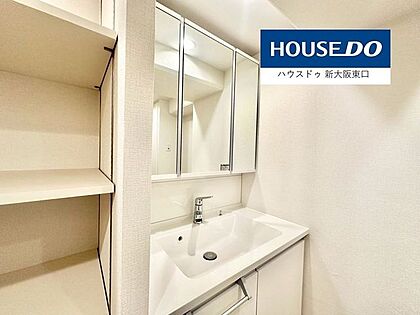 洗面スペースもゆったりこちらも白で統一されており、清潔感がありますね。