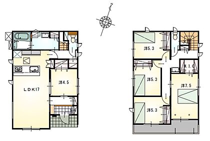 4LDK、17帖のLDKを見渡せるキッチンや土間のシューズクロークなど魅力の詰まった物件です