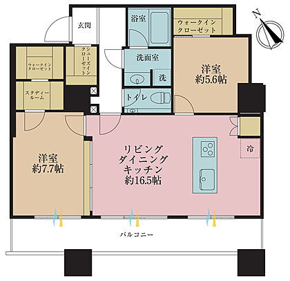 2LDK、専有面積73.81?、バルコニー面積12.88?